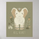 Bring an air of peaceful, loving charm to a young child's room with this beautiful elephant portrait print. The artwork features a sweet, stylized elephant adorned with tribal-inspired markings. The soft, neutral tones of cream and tan contrast beautifully against the calming, olive-green background. Surrounded by simple botanical accents, the print includes the heartwarming caption, "BIG HEART," making it a perfect addition to a modern, gender-neutral, or safari-themed nursery or playroom. Part of our coordinated 'Kid's Safari Decor' collection. Note: design adapted from generative content.