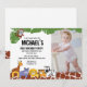 A monkey, giraffe, hippo, lion and zebra illustration can be found on this fun first birthday party invitation. If you're thinking about a theme that lends itself well to fun patterns and playful decorating, I think the safari, jungle theme is amazing. I created these fun animal characters for my son's birthday party. Customize with your party details. Personalized with your child's photo and party details. Have fun!