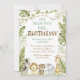 Sweet safari themed birthday invitation featuring some safari party animals, party hat, tropical foliage and a modern calligraphy image heading. This a year of love and a year of fun safari themed birthday invitation is ideal for a party animals birthday.