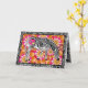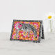 Sweet safari style Happy Valentine's Day card. The zebra is wearing a heart on it's hind quarters that says "LOVE". The zebra is grazing among a field of mod pink and yellow flowers. The remainder of the background consists of psychedelic zebra stripes. The inside greeting reads: I'm wild about you! Happy Valentine's Day. There is a template on the back of the card for the month and year.
