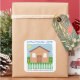 Safe House Demilitarized Zone Children Peace DMZ Square Sticker. Peaceful safe home with a white picket fence, green grass, blue sky, flowers, and serene setting. Let the children grow and prosper in peace.