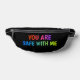 Take pride with you wherever you go! This bold and vibrant fanny pack features the empowering message "You Are Safe With Me" in rainbow colours—spreading support, love, and inclusion with every step. Whether you're at a Pride parade, festival, or just out and about, this lightweight and roomy pack keeps your essentials close and your message loud and clear. Designed for comfort, function, and identity.