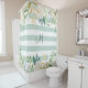This lovely floral shower curtain features sage green and white stripes with trendy watercolor flowers and leaves in shades of ivory, peach, gold, and green. Add your monogram in the centre.