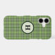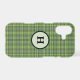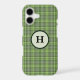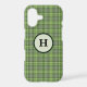 Shades of sage and olive green in an intricate plaid pattern makes this beautiful iPhone case stylish. Personalize with your monogram in a green circle.