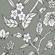 Sage, Black and White Floral Illustrated Pattern Wallpaper