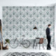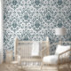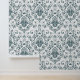 Sage Blue and White Damask Floral peel and stick Wallpaper