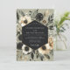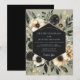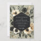 A sophisticated design featuring a muted sage background adorned with a dramatic arrangement of deep charcoal and soft cream blossoms. Lush foliage and painterly florals create a mood of dark romanticism and refined natural beauty. Anemones and dusky roses are subtly suggested within the artistic composition.