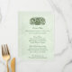 A classic illustration of flowers in a basket is highlighted on this card. The image is repeated as a watermark on the green coloured background. Use it as a menu or any printed piece you might need for your wedding, shower, engagement or corporate party. Customize it with your own menu or other information on the front and add your name(s) and event date on the back. Matching products available. Other colours also available.