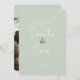 Photo save the date. Light sage background. Modern. Wedding Website on the back as well as photo. Black text. Rounded. Fog filter applied to photo. May remove filter.