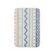 This Native American design pattern features geometric shapes in navy blue, coral, and sage green.