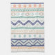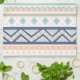 This Native American design pattern features geometric shapes in navy blue, coral, and sage green.
