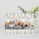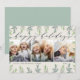 Élégant carte photo de vacances dispose d'une bordure de feuillage peint à la main vert pâle sur un arrière - plan en ivoire doux et chaleureux. Ajoutez trois de vos photos carrés préférées alignées côte à côte. Le salut traditionnel "Happy Holidays" apparaît en haut dans la calligraphie moderne chic lettering. Personnalisez avec votre salutation personnalisée et les noms le long du bas.