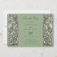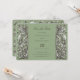 Cette invitation à la datation d'inspiration Art Nouveau témoigne de l'élégance intemporelle. Le cadre vert sage dégage un sentiment de calme et de sophistication, tandis que les motifs argentés complexes offrent un contraste saisissant. La carte présente un motif floral et foliaire élaboré, avec des courbes gracieuses et des formes naturelles qui incarnent le style Art Nouveau. Chaque coin est orné d'illustrations argentées détaillées qui brillent contre le vert muet, rappelant un jardin serein. Ceci sauve l'invitation de la date n'est pas seulement un précurseur de l'événement, mais un morceau d'art en soi, promettant un mariage élégant et mémorable.