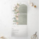 Un design élégant avec une touche rustique chic, avec branches, verdure, eucalyptus et fleurs aux tons d'automne autour de l'invitation. Cette invitation tout-en-un durable vous ferait économiser de l'argent, pas besoin d'inclure des enveloppes RSVP, vos invités couperont le dernier panneau et vous le renvoyer comme carte postale.