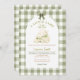 Sage Gingham Bow Little Lamb Baby Shower Invitation
