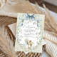 Charming watercolor baby squirrel with blue bow on soft sage green gingham background, framed by delicate forget-me-not florals and leafy wreath. Perfect gender-neutral invitation for a whimsical woodland or cottagecore baby shower. Fully customizable – edit text, colors & more!