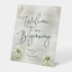 Sage & Gold Floral Welcome To Our Beginning Pedestal Sign