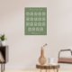 Sage Green 19 Table Wedding Seating Chart Poster, please personalize the names of the couple and the names of the guests along with any of the other text that you may wish to personalize. A stylish seating chart poster featuring elegant white text on a lovely sage green background.