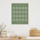 Sage Green 20 Table Wedding Seating Chart Poster, please personalize the names of the couple and the names of the guests along with any of the other text that you may wish to personalize. A stylish seating chart poster featuring elegant white text on a lovely sage green background.