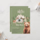 This elegant sage green Adventure Awaits theme baby shower invitation will be the perfect beginning to your mountain and woodlands baby shower. Featuring watercolor mountains, a camping tent and cute forest animals like bear, rabbit and deer. A modern Let the Adventure Begin gender neutral invite for a forest inspired baby shower.