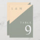 These sage green and cream minimalist, elegant wedding table numbers can be personalized with your information in modern typography. Designed by Thisisnotme©