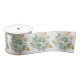 This fun and whimsical ribbon features sage green and gold elegant flowers.