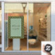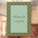 Stylish and chic window display with room to add your logo or business copy in an inset rectangle in soft teal that can be recolored. A great earth tone advertising sign for your business. Sage Green and Gold Filigree Window Cling