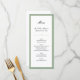 This classy wedding menu card offers a clean white background accented with a sage green and gold border. The sage green colour can be changed by choosing customize.