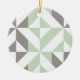 Sage Green and Silver Geometric ZigZag Ceramic Ornament