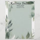 Green and white leaves surround a sage green interior space on this beautiful letterhead that's perfect for a professional or for use at home. The back is plain green, in the same shade as the front.