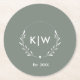 Sage Green and White | Modern Initials Monogram Round Paper Coaster