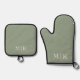 Sage Green and White | Modern Monogram Oven Mitt & Pot Holder Set