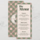 Delight your guests with this elegant Art Deco-inspired wedding menu. Featuring a sophisticated geometric border in sage green and dusty rose, this card offers a clean and modern layout to showcase your wedding breakfast or dinner courses. The reverse side features the signature geometric pattern with a personalized monogram. A perfect addition to your reception table decor for a cohesive and high-end look.