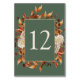 Sage Green Autumn Leaves Table Number. Add autumn elegance to your reception with this table number design featuring a border of watercolor florals and scattered leaves in rich terracotta, burnt orange, and beige. The soft sage green centre draws the eye to the number while maintaining a cohesive fall look. Let every table bloom—start customizing now.