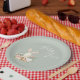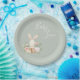 Such a sweet and elegant baby shower “baby love” round paper plate for your baby shower special event. The sage green subtle colour sets the tone for simplicity and elegance. What an adorable baby bunny. Such a sweet and simple way to serve your guests.