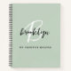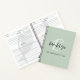 This personalized recipe notebook features a monogram and first name in modern black and white script on a trendy sage green background, with the additional text in black sans serif font below.