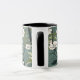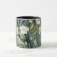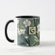 This lovely sage green floral mug features a beautiful Asian print of tropical flowers and golden green leaves in Chinoiserie style. Your initial appears in dark green against a chartreuse square, and is bordered in dark green on the front and back. Make sure to type your initial in the Personalize section. The mug is shown here with a black inside and handle but other options are available.