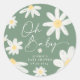 Cet autocollant rond vert sauge fait partie de la collection Floral Daisy baby shower, qui se caractérise par un style rétro avec des fleurs marguerites aquarelles et des couleurs désert neutres qui conviennent aux garçons et aux filles, ou baby shower neutre pour le genre. Avec d'innombrables options de personnalisation, ce modèle est facilement personnalisable à tous les événements et facile à adapter à vos couleurs.