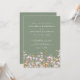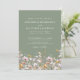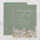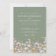 Elevate your wedding with this elegant design featuring soft sage green backgrounds on both sides, creating a calm and timeless base that works beautifully from spring through autumn. The invitation highlights a refined floral border along the bottom, featuring muted pastel blooms in soft pink, blue, purple, yellow, and orange tones, gently accented with delicate greenery for a serene, garden-inspired look.