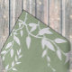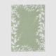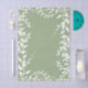 White botanical leaves against a sage green background