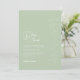 Élégante et simple invitation caractéristiques de ligne botanique avec une police de script romantique manuscrite créative. Cette carte d'invitation à plat 5x7 revient à une couleur d'accent vert pâle et clair complémentaire mettant en évidence votre site Web de mariage QR Code RSVP pour que les invités puissent voir les informations sur votre jour de mariage. Un téléchargement numérique est également disponible pour des célébrations durables. Customisez pour convenir à votre style d'événement en cliquant simplement sur le bouton "PERSONNALISER" pour commencer la modification. 🌺 ✨ 🎨 Besoin d'un design pour vous ? - Les commandes personnalisées sont toujours les bienvenues - nous sommes passionnés par la création de moments qui reflètent votre essence et rendent vos événements vraiment inoubliables. 📫 Cliquez sur le bouton Contact ci-dessous ! Concevoir quelque chose d'extraordinaire ensemble.
