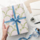 This charming wrapping paper design features a seamless pattern of hand-painted green ribbon bows arranged in a playful scalloped lattice. With wavy lines that mimic the feel of loosely tied gift ribbon and delicate bow accents, the pattern evokes a whimsical, lighthearted elegance. Set against a soft blush pink background, the green ribbons create a fresh, festive contrast perfect for spring, holidays, or everyday gift-giving. Ideal for anyone who loves a dainty, feminine touch with a nod to vintage wrapping traditions and modern minimalism.