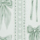 An elegant hand-drawn pattern featuring sage green bows and delicate lace arranged in structured vertical stripes. The soft, muted palette and symmetrical layout create a calm, refined look that works beautifully for nursery decor, cottage interiors, and timeless, romantic designs. All artwork is hand painted by and copyright protected to Kaitlyn Thomas.