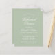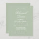 A simple rehearsal dinner invitation with a modern colour: sage green. It has just white text on sage green background. The words "Rehearsal Dinner" and the name are written in an elegant calligraphic script.