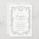 Elegant French Victorian Sage Green Floral Couples Shower invitation with custom text on the back.