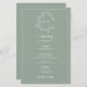 Créez le cadre de réception parfait ! Nous aimons ce menu mariage 5,5 x 8,5 pouces moderne et tendance vert sauge ! Simple, élégant et oh-so-joli, il présente une couronne feuilletée dessinée à la main encerclant un monogramme mariage moderne. Il est personnalisé en typographie élégante, et accentué par la calligraphie lettrée à la main. De plus, il sert de carte de séjour, avec le nom de l'invité en bas en grand format. Enfin, il est taillé dans un cadre délicat. Voir la suite ici : https://www.zazzle.com/collections/sage_green_leafy_crest_monogram_wedding_invitation-119735143483526238 Contacter le concepteur pour les produits correspondants pour compléter la suite, OU pour les variations de couleur de ce design. T Copyright Anastasia Surridge pour Invitations élégants, tous droits réservés.