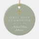Sage Green Cross Boy First Communion Photo Ceramic Ornament.