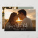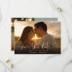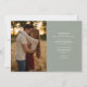 This elegant heart script photo save the date card features your photo and a script save the date above your names, date and venue. The reverse features an additional photo and message on a sage green background. Designed by Thisisnotme©