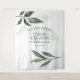 Sage green watercolor foliage sets off his botanical backdrop for your wedding photo booth - (or as a coordinated backdrop for your guestbook or wedding party table) - written with the bride and groom's names and wedding date in modern contemporary style text. Design created for the BarefootBride™ by © WhimsicalArtwork™ - This is part of a complete Wedding Stationery Suite with matching wedding, baby shower and other event stationery.