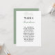 Dirigez vos invités avec style en utilisant cette sauge verte eucalyptus mariage carte de siège table. Conçue avec un élégant mélange de polices serif et script, cette carte présente une délicate ligne d'art eucalyptus sprig au-dessus du numéro de table et de la liste d'invités. Parfait pour les mariages rustiques, botaniques ou de jardin, cette carte personnalisable apporte un look poli et coordonné à votre décor de réception.